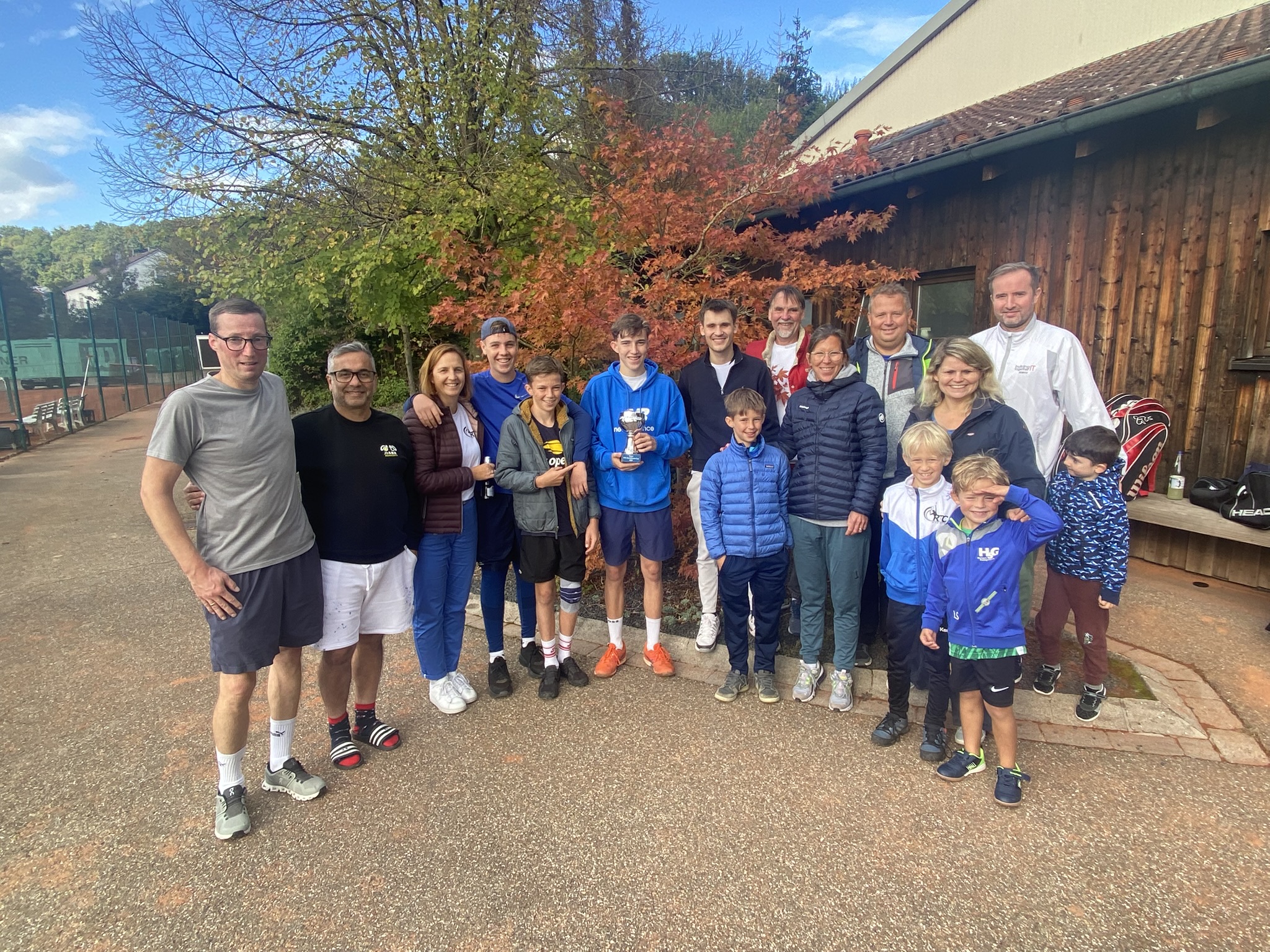 Wieder eine runde Sache war der 2. Generationen-Cup, der am vergangenen Samstag auf der Anlage des RTC gespielt wurde. Schon bei der ersten Austragung im vergangenen Jahr fand die Idee von Sportwart Kadir Yildirim großen Anklang und alle Teilnehmer waren für eine Wiederholung. 12 Paare mit einem Altersunterschied von mindestens 20 Jahren hatten diesmal gemeldet. 4 Gruppen zu je drei Paaren wurden ausgelost, womit jedes Doppelpaar mindestens 2 Spiele zu bestreiten hatte. Viele unterschiedliche Paarungen waren am Start: Junioren mit Mannschaftsspielern, Anfänger mit erfahrenen Spielern, Kind mit Elternteil und im wahrsten Sinne des Wortes klein mit groß. Alle Spieler hatten Spaß und die auch Zuschauer kamen auf ihre Kosten und konnten tolle Ballwechsel beobachten. Bewundernswert war, mit welchem Eifer besonders auch die Kids dabei waren. Die vier Gruppenersten spielten dann das Halbfinale und die Sieger daraus das Finale. Den Siegerpokal in einem tollen Endspiel holten sich Fabian und Valentin Rommel gegen Thilo und Marvin Schick.